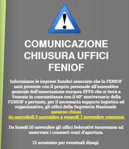 FENIOF COMUNICAZIONE CHIUSURA UFFICI